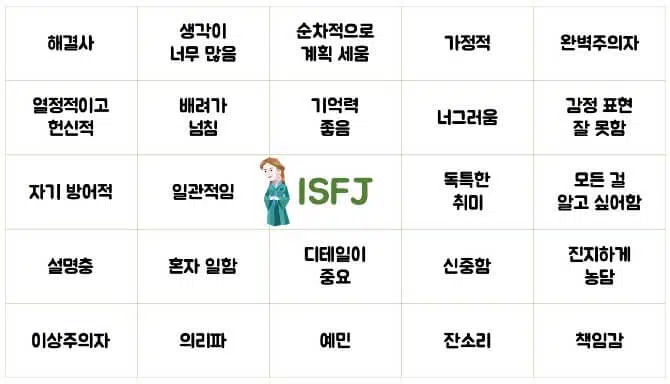 ISFJ는 조용하고 책임감이 강한 사람들로 알려진 성격 유형입니다.